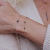 Seven bezel set celestial Sapphires evenly spaced with delicate 14k gold chain make this station bracelet the perfect gift for a September birthday. The round briolette cut stones sparkle in this delightful and elegant design perfect for everyday wear. Layers beautifully with other bracelets.