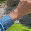 Four sparkly briolette cut birthstones set in 14k gold bezels catch and reflect the light in this balanced bracelet. Dainty chain and genuine gemstones pair femininity and meticulous design. Choose family birthstones or select the stone that speaks to you. Perfect for everyday wear - lightweight enough to sleep in and never take off. Layers beautifully with other bracelets. A thoughtful gift for a mother or grandmother, it is easy to add on birthstones and letters so it can grow with your family.