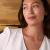 Woman with a Newport necklace featuring 4 mm briolette cut citrines bezel set in 14k yellow gold