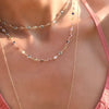 Strands of sparkling gemstones bezel set in 14k gold create glamorous Newport necklaces and bracelets lightweight enough for everyday wear and dazzling enough for a night out.