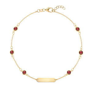 1 Nameplate & 6 Petite Garnet Bracelet in 14k Gold (January)