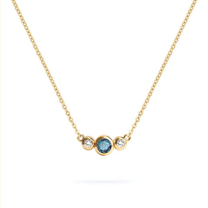 A timeless silhouette, reimagined for the everyday. The Barrington 3 Stone Necklace features a captivating trio of bezel-set stones, one large center Alexandrite framed by two small Diamonds, symbolizing connection, balance, and the people who matter most. Set on our solid 14k gold saffron chain, this necklace brings a soft shimmer and meaningful elegance to your everyday look. Personalize it with birthstones that represent your children, your journey, or your chosen family, each stone telling a part of your story. Effortlessly wearable and rich with sentiment, this piece layers beautifully with other necklaces like the Adelaide Mini Chain, and The Bayberry 11 Necklace or stands strong on its own as a signature necklace you’ll never want to take off.
