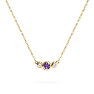 Barrington Amethyst Necklace with Diamond Side Stones in 14k Gold (February)