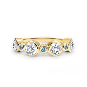 Features four 4mm round cut, bezel set, sustainably grown Diamonds and five 2mm round cut, bezel set Nantucket Blue Topaz.