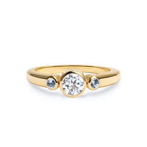 Barrington Diamond Ring with Aquamarine Side Stones in 14k Gold (March)