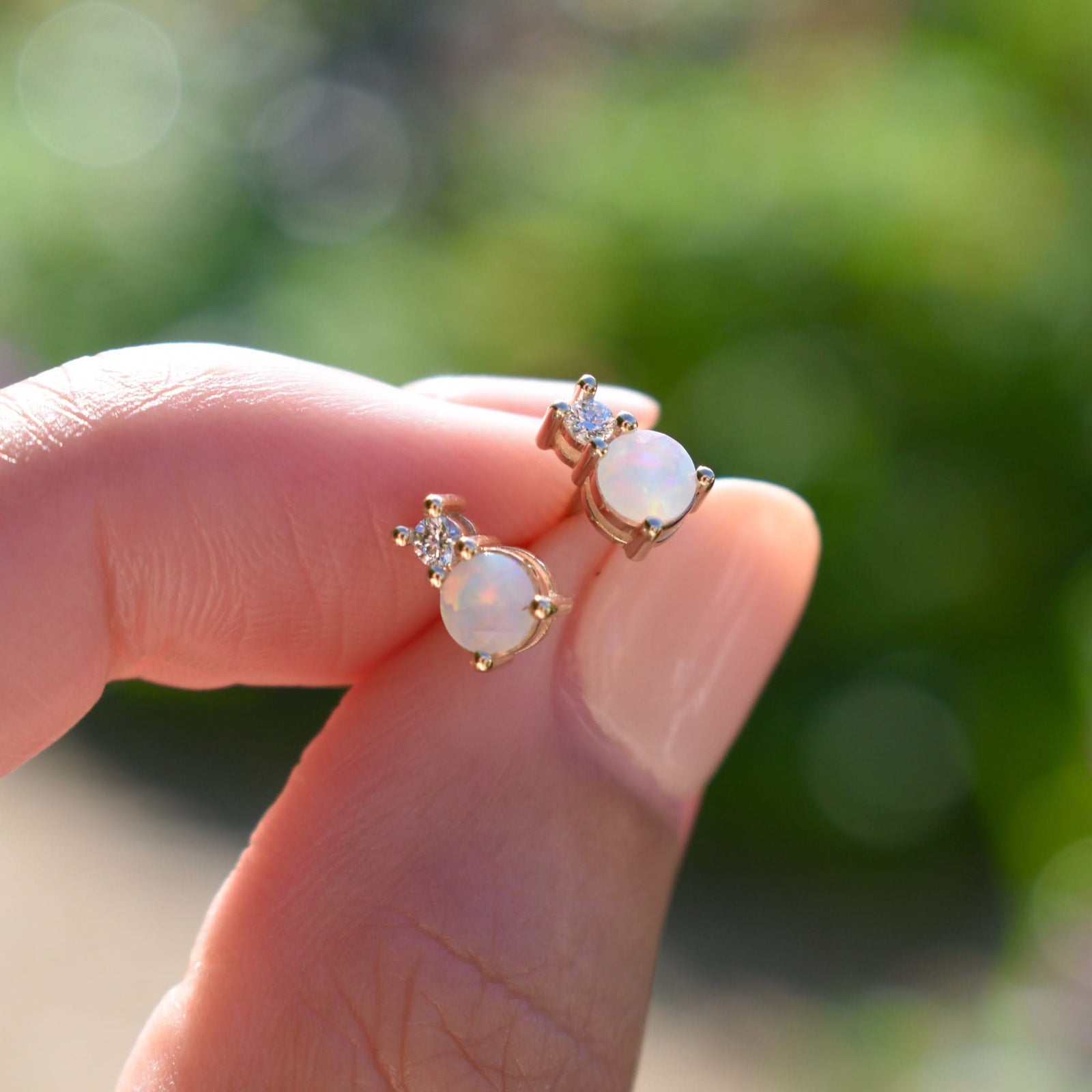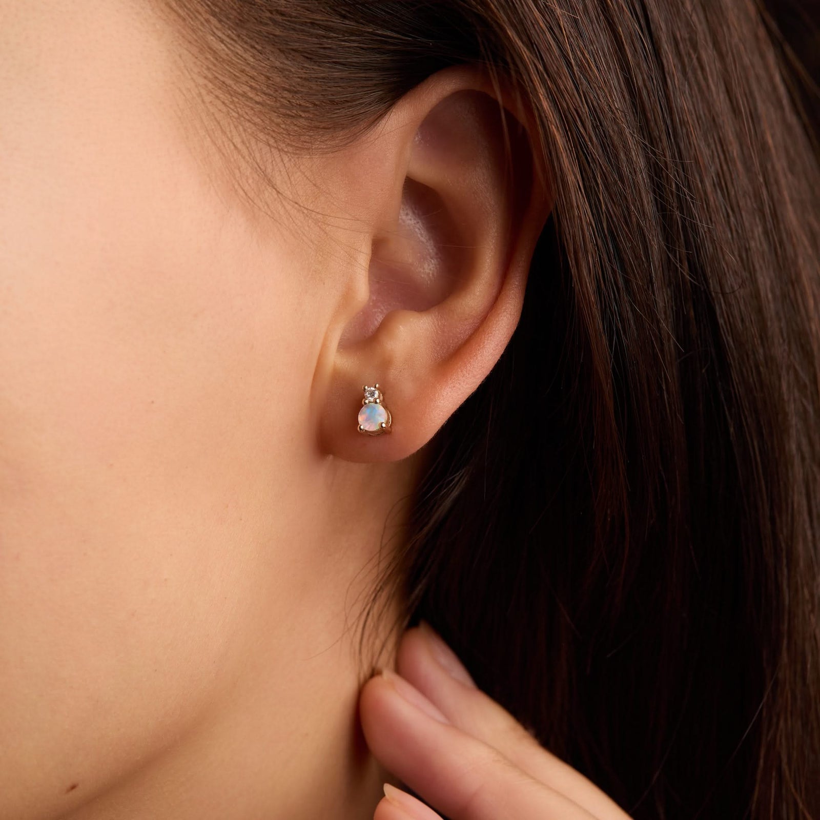 Greenwich Flower Opal & Diamond Earrings in 14k Gold (October)