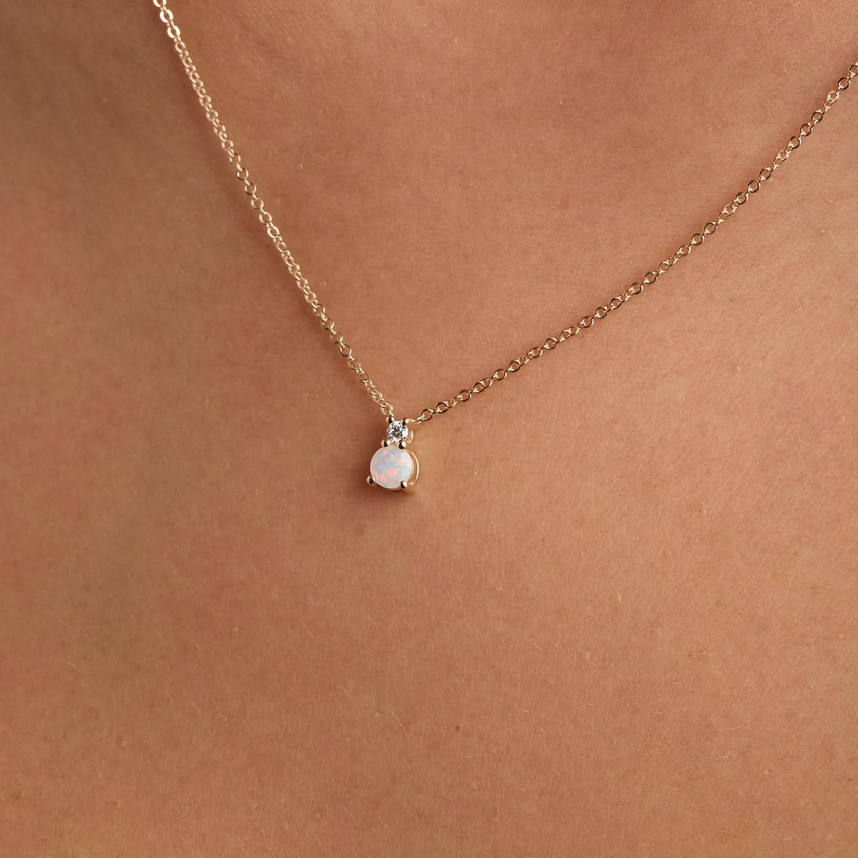 Greenwich Flower Opal & Diamond Necklace in 14k Gold (October)