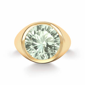 Handcrafted in solid 14k gold, the Jamestown Ring is a study in modern elegance. Its smooth, sculptural form cradles a luminous round-cut Green Amethyst in a refined bezel setting, the radiant heart of the design. Each piece can be made uniquely yours, personalized with the birthstone that tells your story.