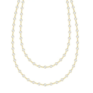 A luxuriously long strand of luminous gemstones make a glamorous statement. Lightweight enough for everyday wear or a dazzling night out, you’ll love the glowing, round briolette cut Moonstones bezel set in solid 14k gold. Wear in one long strand or double it for a perfect 16” and 18” layered look. This versatile necklace is sure to become a favorite staple of your wardrobe. For the perfect June birthday gift, pair it with delicate Newport dangle earrings to add extra sparkle!