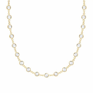Strands of luminous gemstones bezel set in 14k gold make a glamorous statement. Lightweight enough for everyday wear or a dazzling night out, you’ll love this tennis necklace style with glowing, round briolette cut White Topaz. Available in various lengths, each with an adjustable chain extender (note the number of stones is determined by the length). Perfect April birthday gift or an unforgettable milestone anniversary gift, especially paired with a Newport White Topaz Bracelet.