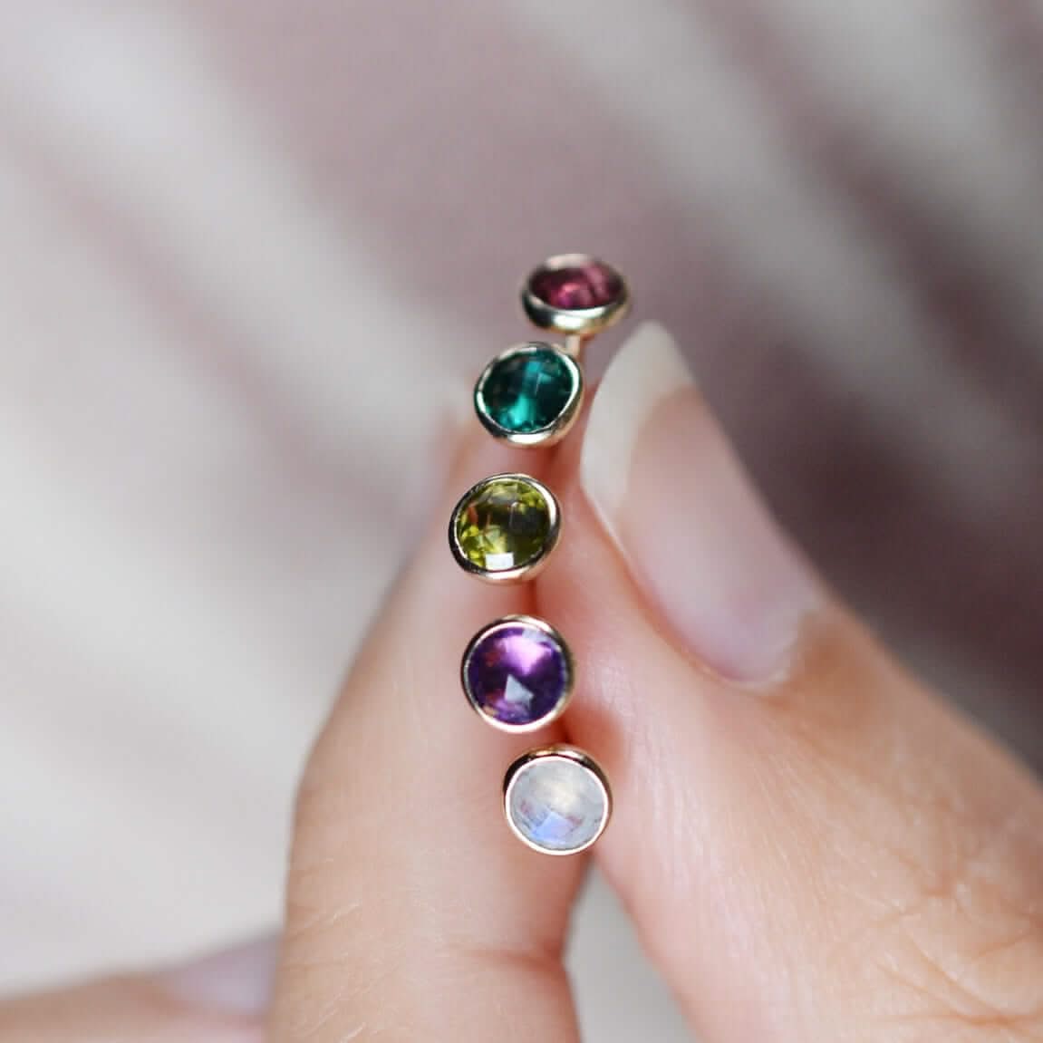 Petite, lightweight 14k gold Garnet stud earrings in our signature birthstone design offer a dainty and minimal look. Perfect for stacking with other studs or huggie hoops, or for wearing alone as an everyday staple. Genuine Garnet set in solid 14k gold make them the perfect January birthday gift.