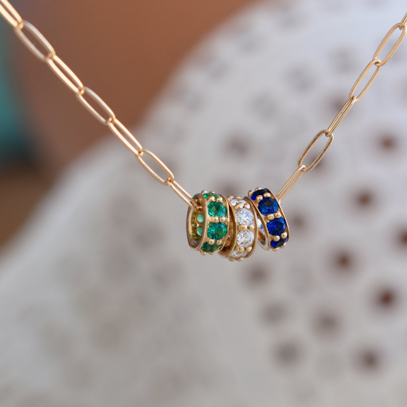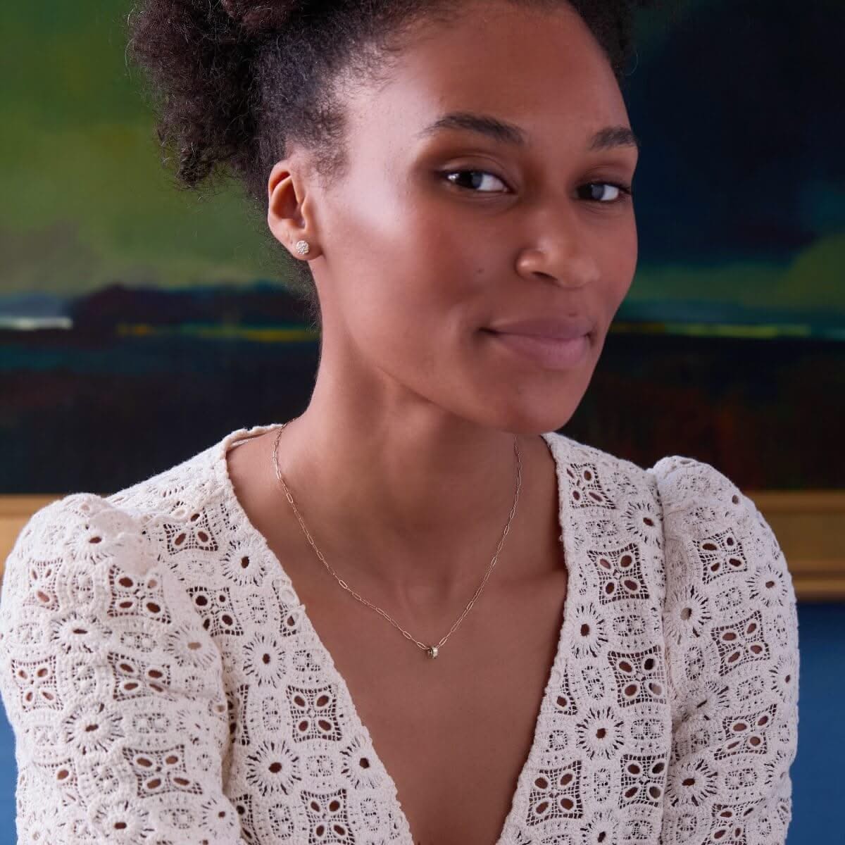 The Rosecliff Birthstone Bead is set with eight faceted 2mm Diamonds, expertly prong-set in 14k gold. Petite and delicate, it’s designed to slide onto a chain and can be worn on its own for a subtle touch or stacked with others to tell a personal story. Each bead can represent a loved one, a special moment, or your own birthstone—start with one to mark a birthday, anniversary, or milestone, and add more over time as your story unfolds. We recommend pairing it with the Mini Adelaide Paperclip Chain for an elegant, timeless look.