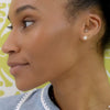 Each earring features Seven 2mm faceted round cut, prong set, Diamonds.