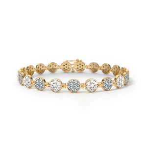 Our modern take on the classic tennis bracelet features a line of sparkling Nantucket Blue Topaz's, each handset in a delicate floral cluster within polished 14k gold discs. Refined, feminine, and unmistakably eye-catching, it’s an heirloom-quality piece designed to be worn now and treasured forever. Customize your bracelet to tell your story. Choose one meaningful birthstone, alternate vibrant Nantucket Blue Topaz's with diamonds, or create a repeating birthstone pattern that’s uniquely yours. Station count varies by bracelet length for a perfectly balanced fit. Complete the look with the Rosecliff Birthstone Mini Stud Earrings and coordinating necklace for a cohesive set that feels timeless and beautifully pulled together.