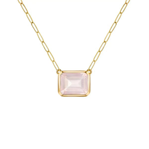 An emerald-cut Rose Quartz, hand-set in a luminous 14k gold bezel, brings bold clarity to this timeless statement piece. Framed in clean lines, the Warren Rose Quartz Necklace rests on a delicate Adelaide Mini paperclip chain, designed for effortless layering or striking simplicity on its own. A meaningful gift for birthdays, anniversaries, or any milestone worth marking.