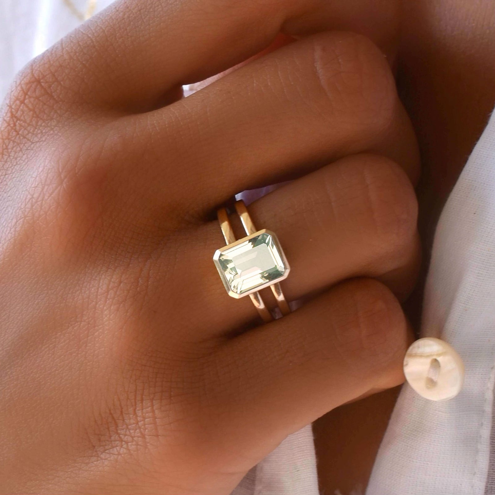 Warren Vertical Green Amethyst Ring in 14k Gold (February)