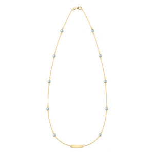 1 Nameplate & 10 Petite Aquamarine Necklace in 14k Gold (March)