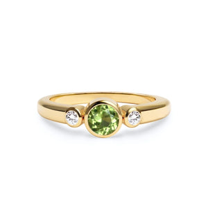 Barrington Peridot Ring with Diamond Side Stones in 14k Gold (August)