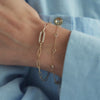 Seven bezel set crystalline White Topaz evenly spaced with delicate 14k gold chain make this station bracelet the perfect gift for an April birthday. The round briolette cut stones sparkle in this delightful and elegant design perfect for everyday wear. Layers beautifully with other bracelets.