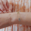 Six sparkly briolette cut birthstones set in 14k gold bezels catch and reflect the light in this balanced bracelet. Dainty chain and genuine gemstones pair femininity and meticulous design. Choose family birthstones or select the stone that speaks to you. Perfect for everyday wear - lightweight enough to sleep in and never take off. Layers beautifully with other bracelets. A thoughtful gift for a grandmother, it is easy to add up to two birthstones so it can grow with your family.