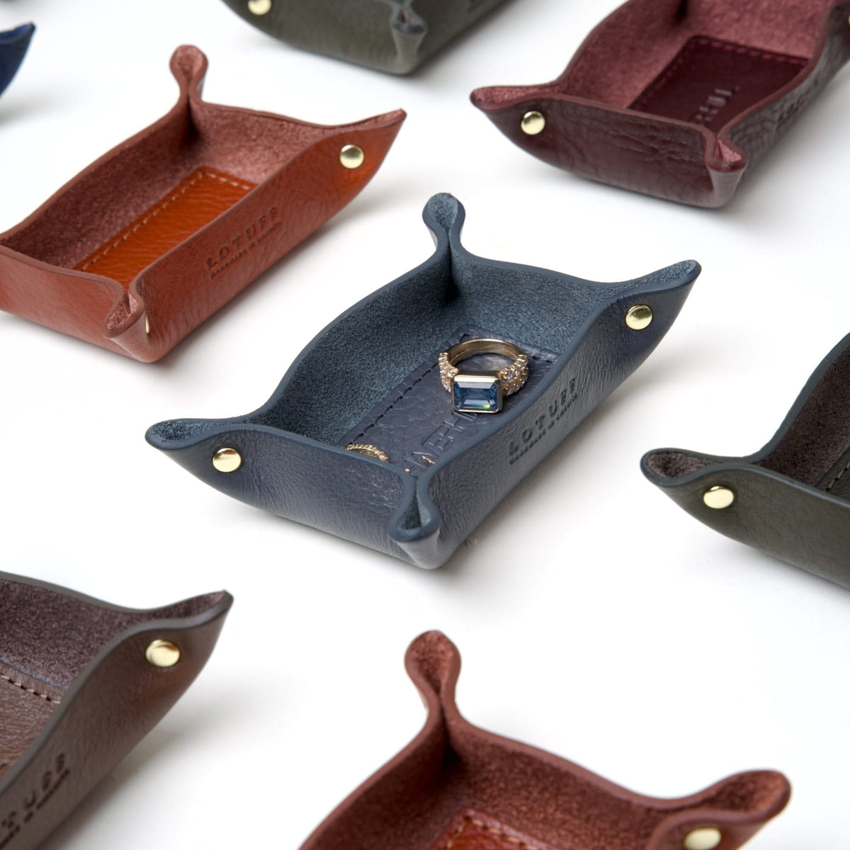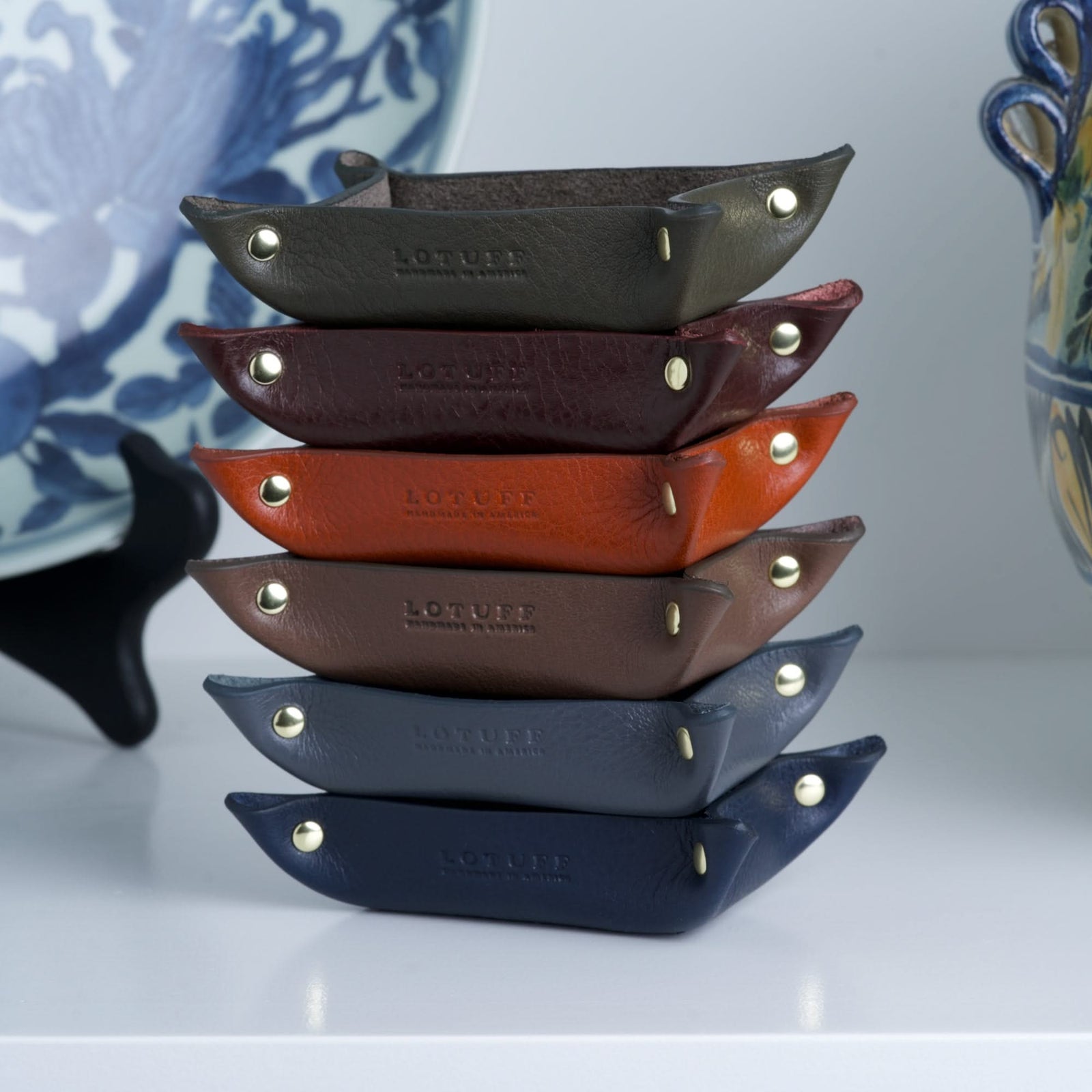 Keep your Haverhill jewelry organized and beautifully displayed with this thoughtfully designed tray, created in collaboration with Rhode Island leather brand, Lotuff. Handcrafted from premium vegetable-tanned leather, each tray comes in a surprise color, every option thoughtfully chosen for its sophisticated appeal. Perfect for storing your favorite pieces, this locally crafted tray combines style and practicality, reflecting the quality and care behind every Haverhill creation.