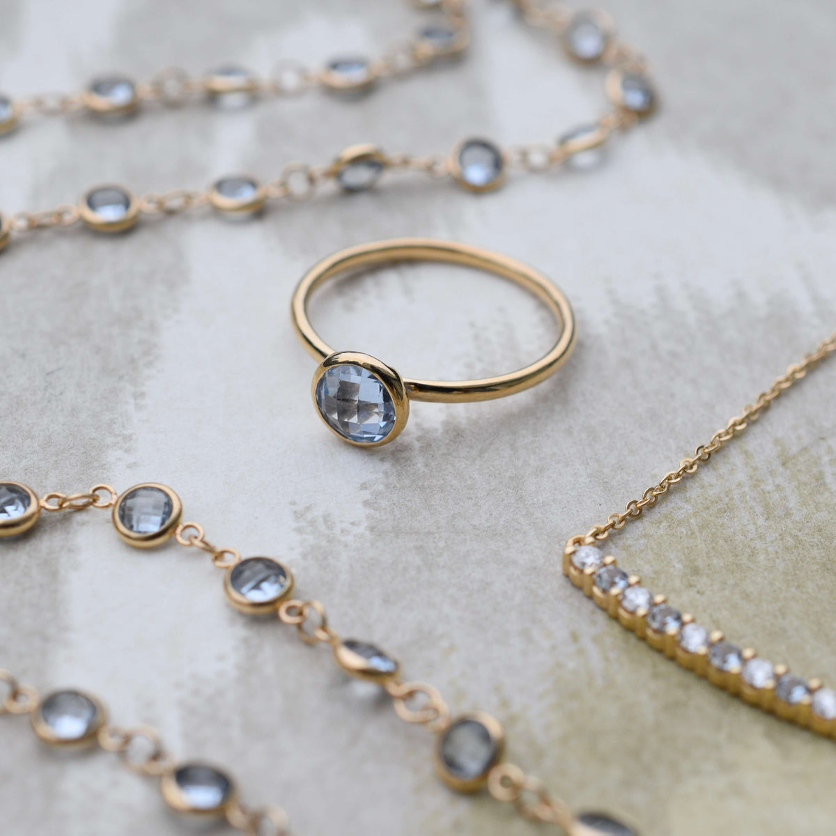 Make a statement with a serene Aquamarine Grand Ring. The 6mm round briolette cut sustainably grown Aquamarine set in a 14k gold bezel is eye-catching and lustrous. Stacks well with other Grand rings or with Rosecliff Band Rings. A lovely gift to celebrate March birthdays! Pair with a Grand Birthstone Bracelet, Necklace or Earrings for a thoughtful milestone birthday gift.