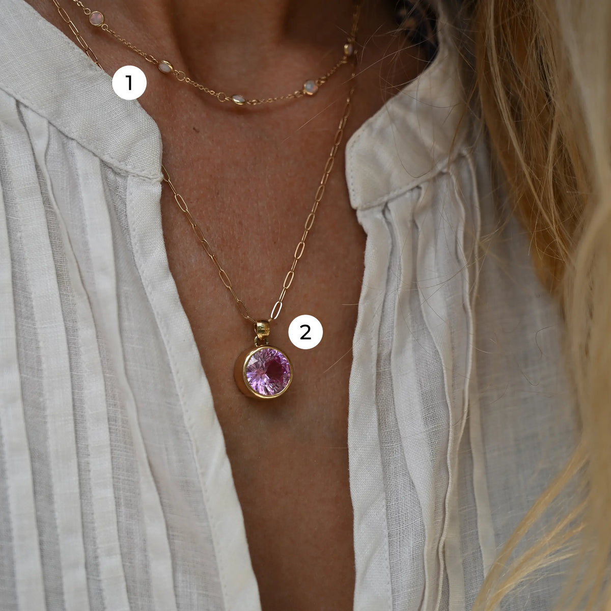 Handcrafted in solid 14k gold, the Jamestown Pendant is a study in modern elegance. This bezel set gemstone pendant features a luminous round cut stone cradled in a smooth, sculptural setting, creating a timeless gold pendant necklace designed for everyday wear. The polished gold frames the stone’s brilliance with intention, offering a refined silhouette that feels both classic and contemporary. Meticulously crafted to catch the light from every angle, the Jamestown is a modern heirloom and an effortless statement piece. Layer it with your choice of Adelaide or Adelaide Mini chain for a personalized gold necklace look. Perfect as a birthstone pendant, anniversary gift, graduation gift, or meaningful fine jewelry piece, it is designed to celebrate milestones and tell your story with lasting elegance.