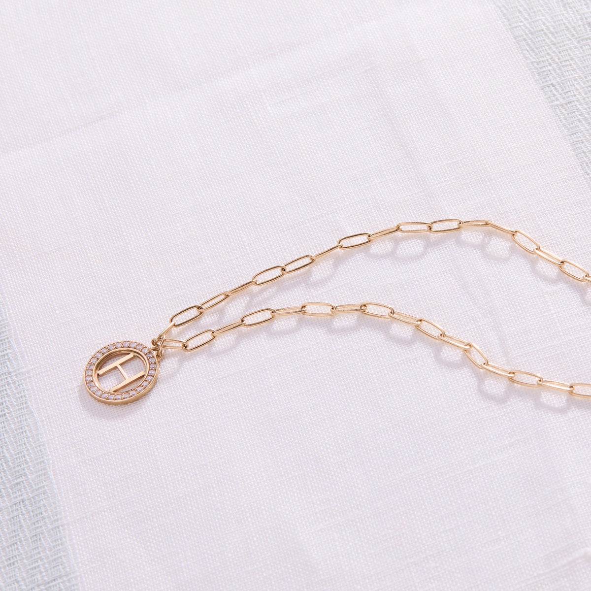 The Letter & Diamond 14k Gold Pendant showcases a solid gold initial surrounded by a halo of small Diamonds, beautifully representing you or a loved one. Paired with your favorite chain, this substantial pendant is a stunning expression of love, perfect for everyday wear.