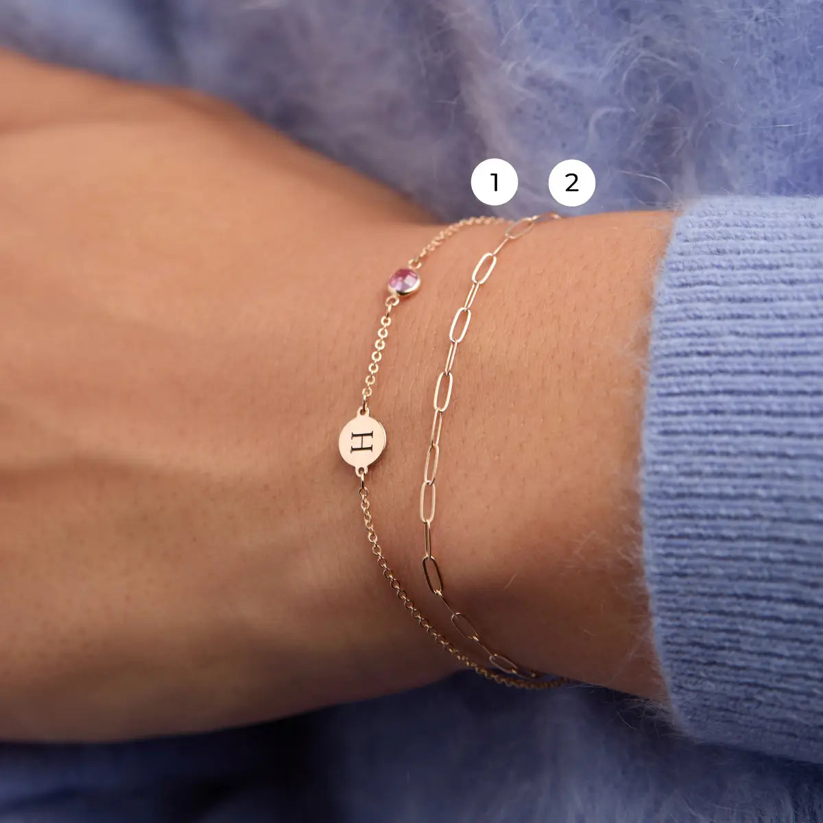 - 1 Letter & 1 Petite Pink Sapphire Bracelet