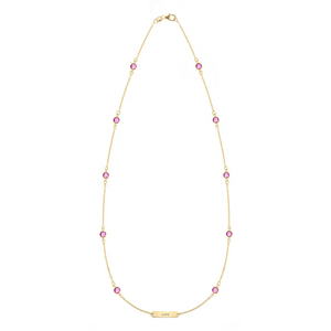 1 Nameplate & 6 Petite Pink Sapphire Bracelet in 14k Gold (October)