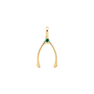 Small Emerald Wishbone Pendant in 14k Gold (May)