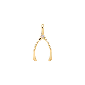 Small Opal Wishbone Pendant in 14k Gold (October)