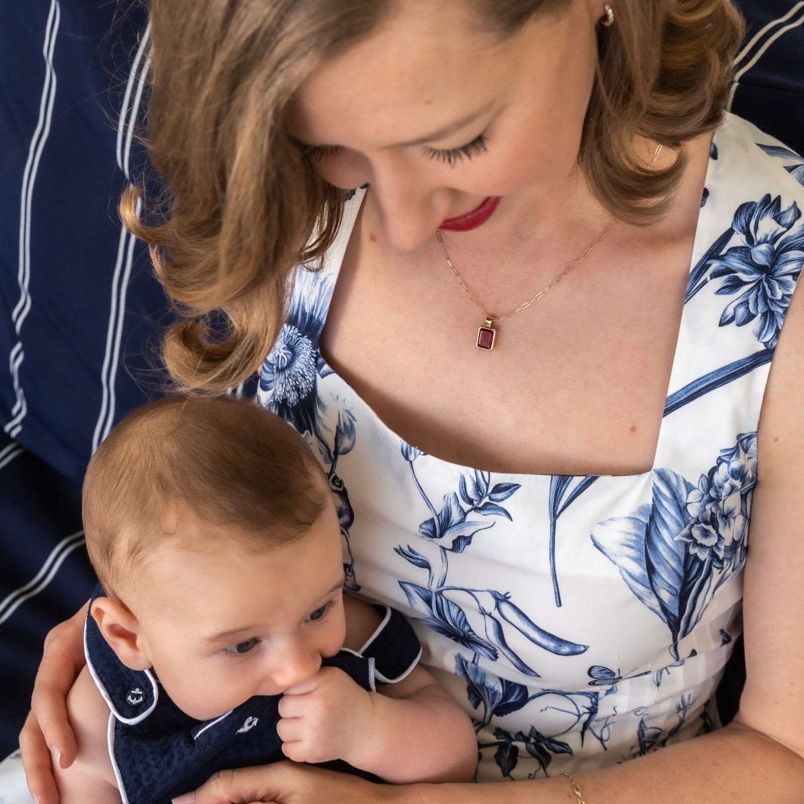 An impressive emerald cut Garnet hand set in a 14k gold bezel is the centerpiece of this iconic statement piece. Further define the look with your choice of a Saffron cable chain or an Adelaide paper clip chain. Heritage styling makes this pendant the perfect gift for milestone occasions like graduations, promotions or anniversaries.